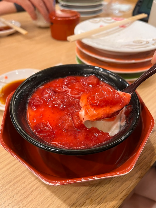 또 초밥 외에도 따뜻한 튀김 소바나 달콤한 딸기 안닌두부같은 서브 메뉴도 손님들이 자주 찾는 메뉴라고 합니다.